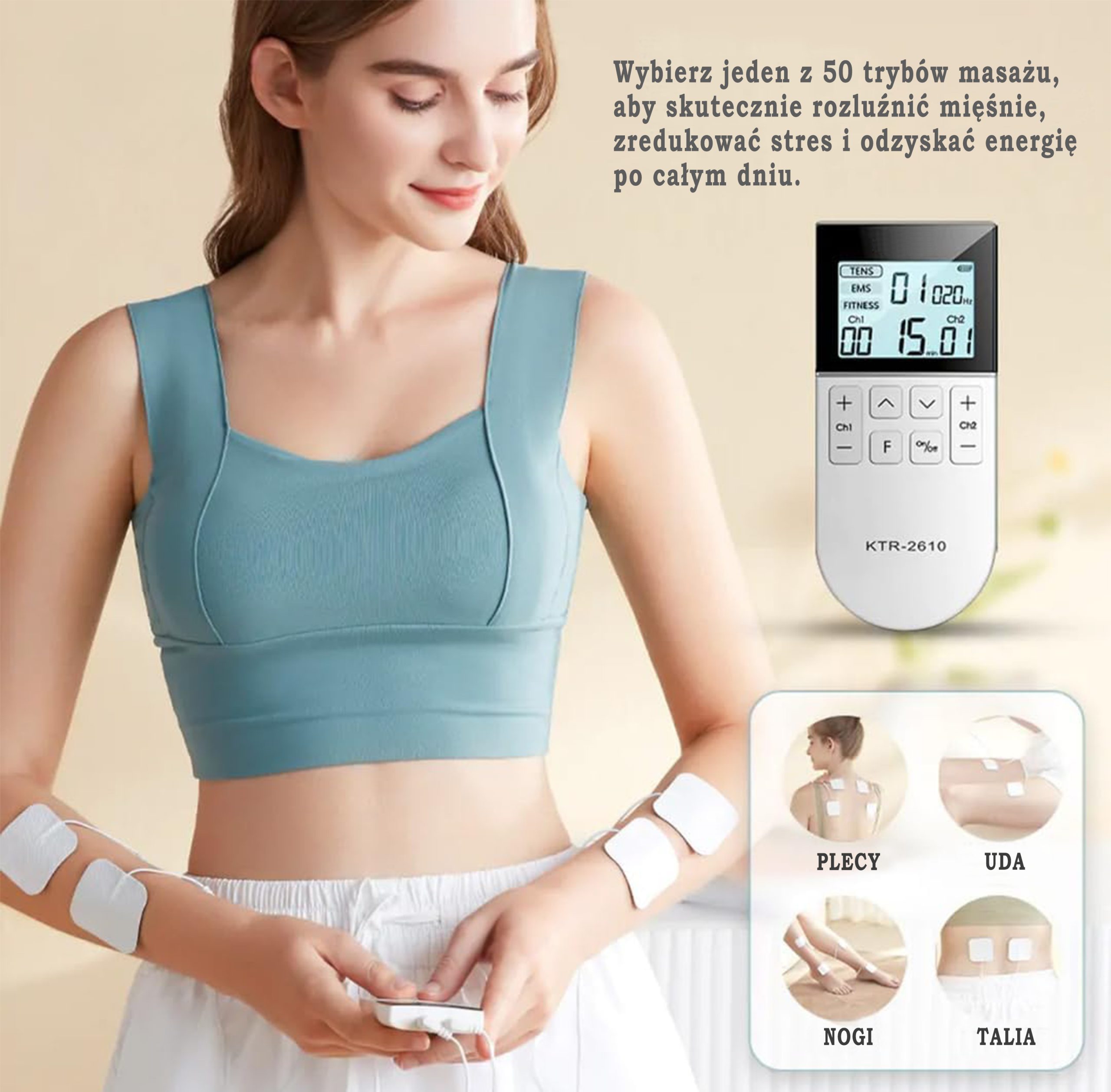 Pangao KTR-2610 elektrostymulator TENS EMS FITNESS 3w1, 50 trybów, 16 poziomów, podwójne kanały
